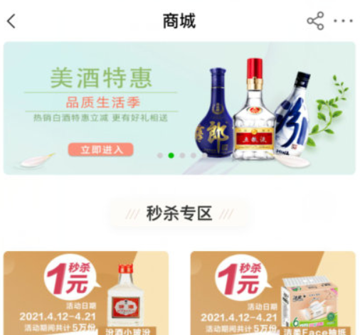【农行】APP-生活-秒杀专区,有两个1元秒杀